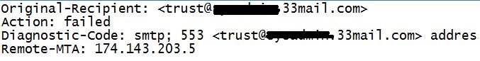 De esta manera, si en algún momento comenzamos a recibir correo masivo o no deseado, podremos eliminar o bloquear temporalmente el “alias” involucrado. A continuación, un correo muestra que recibe el remitente cuando un alias ha sido bloqueado.