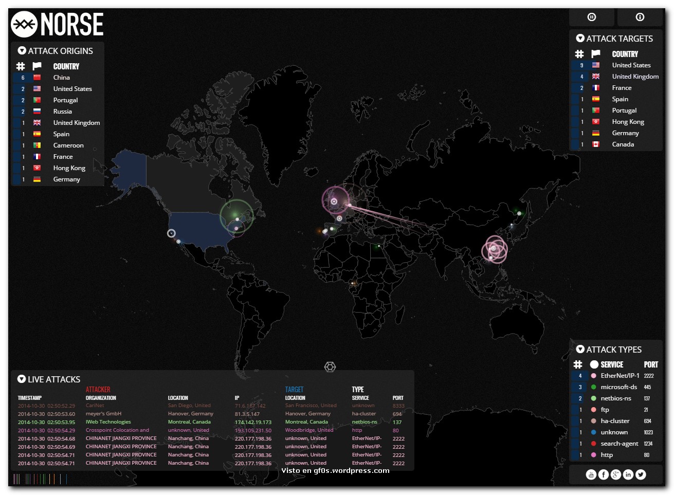Con lo anterior como contexto, a continuación te comparto una lista de sitios que muestran ciberataques a nivel mundial. La gran mayoría de ellos son en tiempo real e incluso algunos son interactivos.