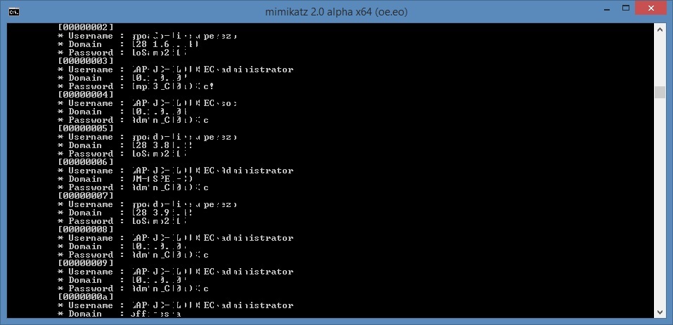 La sección enmarcada muestra una de las contraseñas obtenidas, sin en cambio, el dump analizado puede contener mas contraseñas de inicio de sesión (aun hacia otros equipos) las cuales podrían verse como la siguiente imagen.