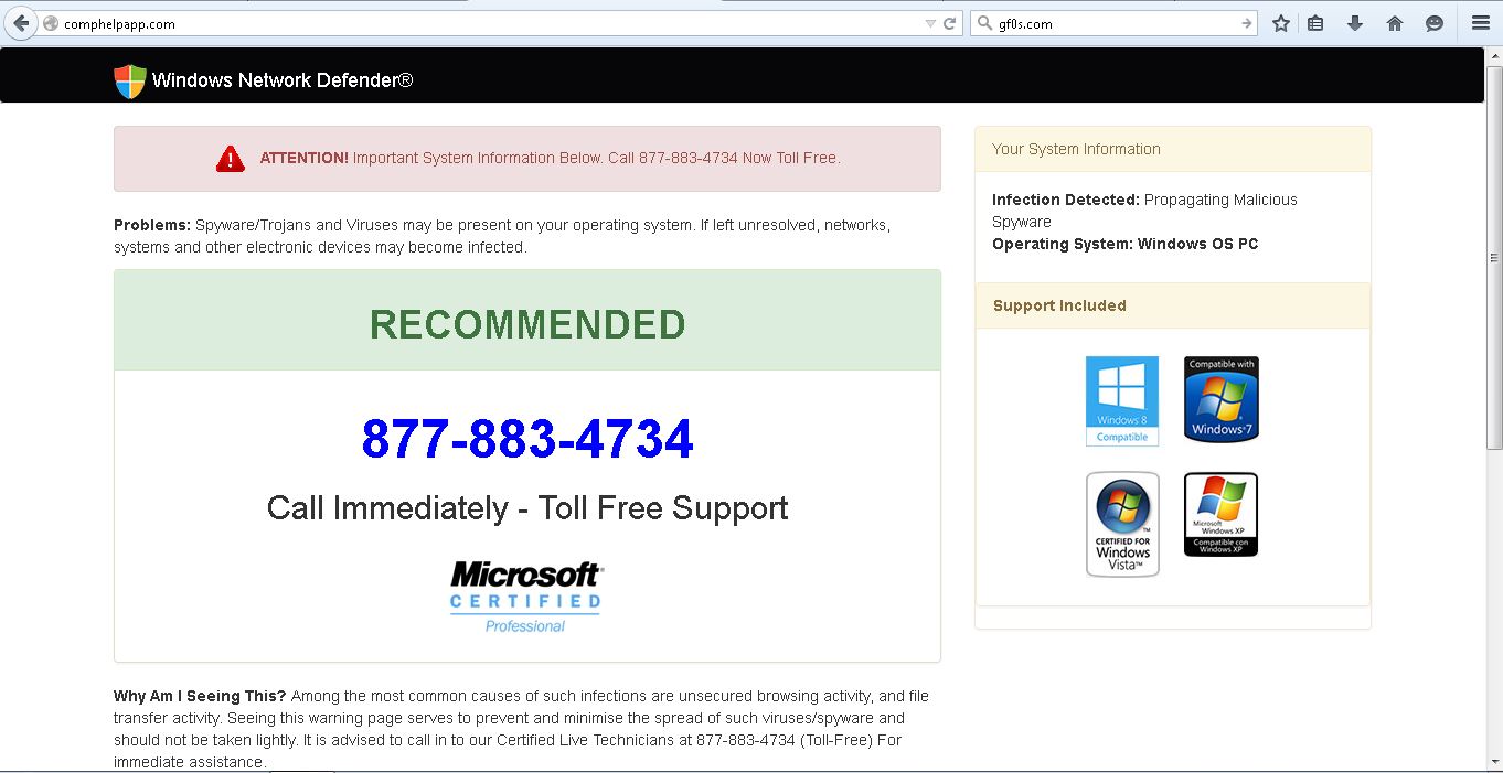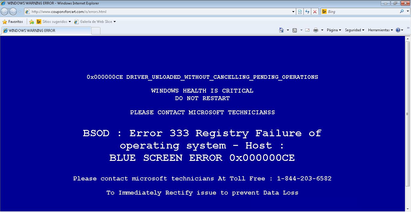 Pero no por ser simple pierde efectividad, en esta ocasión se ha retomado el viejo engaño de simular errores o virus en Windows para que los usuarios *afectados llamen a un (supuesto) número de soporte y con ello reciban ayuda técnica gratuita. Todo parece bondad y buenos deseos, lamentablemente se trata de una variante de ingeniería social que tiene como objetivo obtener datos personales, vender falsos productos y en general robar dinero.