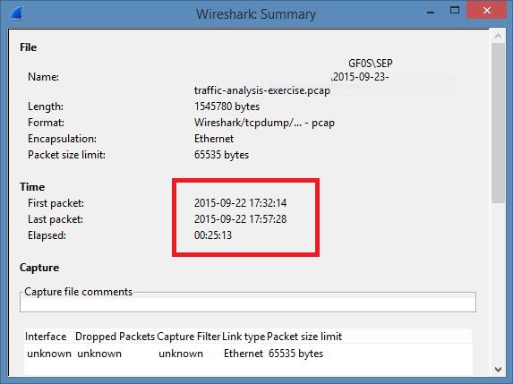 - 2015-09-22 – 17:41:25 – The computer starts to exchange encrypted (or obfuscated) information with the malicious Web site.
