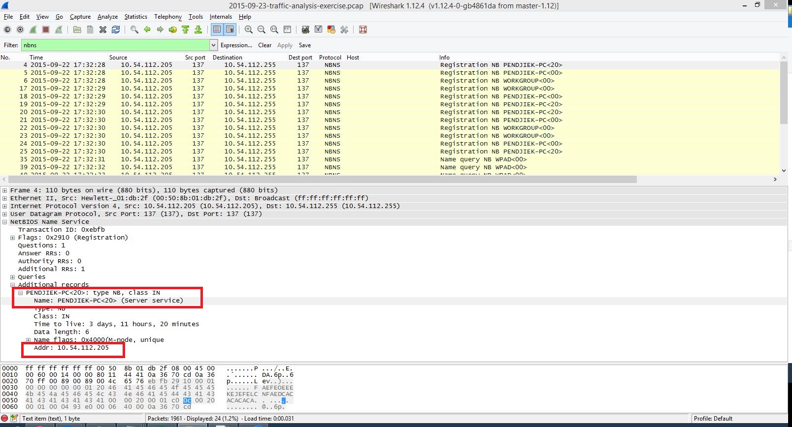 - 2015-09-22 – 17:32:17 – The DHCP assigns the IP 10.54.112.205.