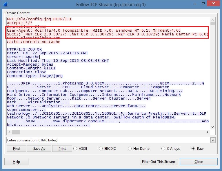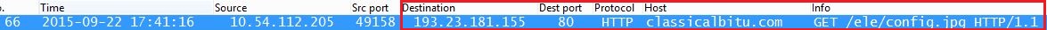 - 2015-09-22 – 17:41:16 – The computer download an (.jpg) image called config.jpg with hidden instructions.